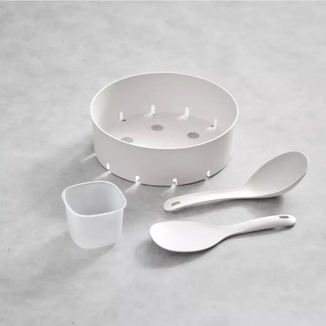 Uz Xiaomi Smart Multifunctional Rice Cooker dolazi i košara za kuhanje na pari, lopatica za rižu, kutlača i mjerna posuda.